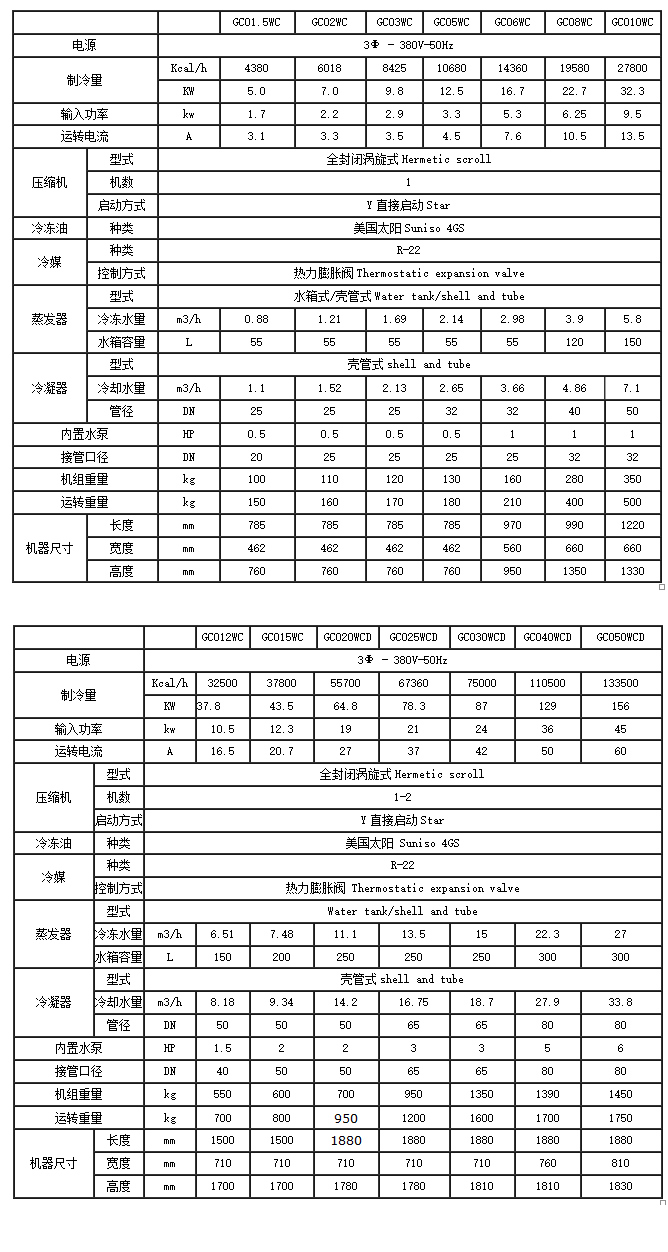 水冷式冷水机技术参数表